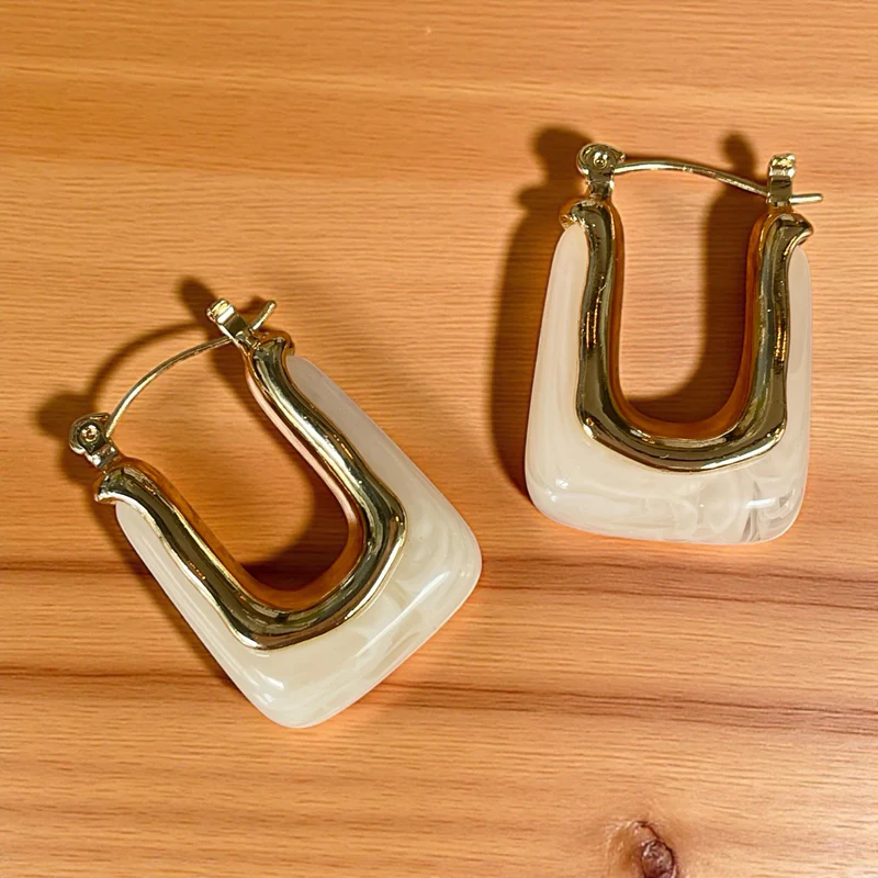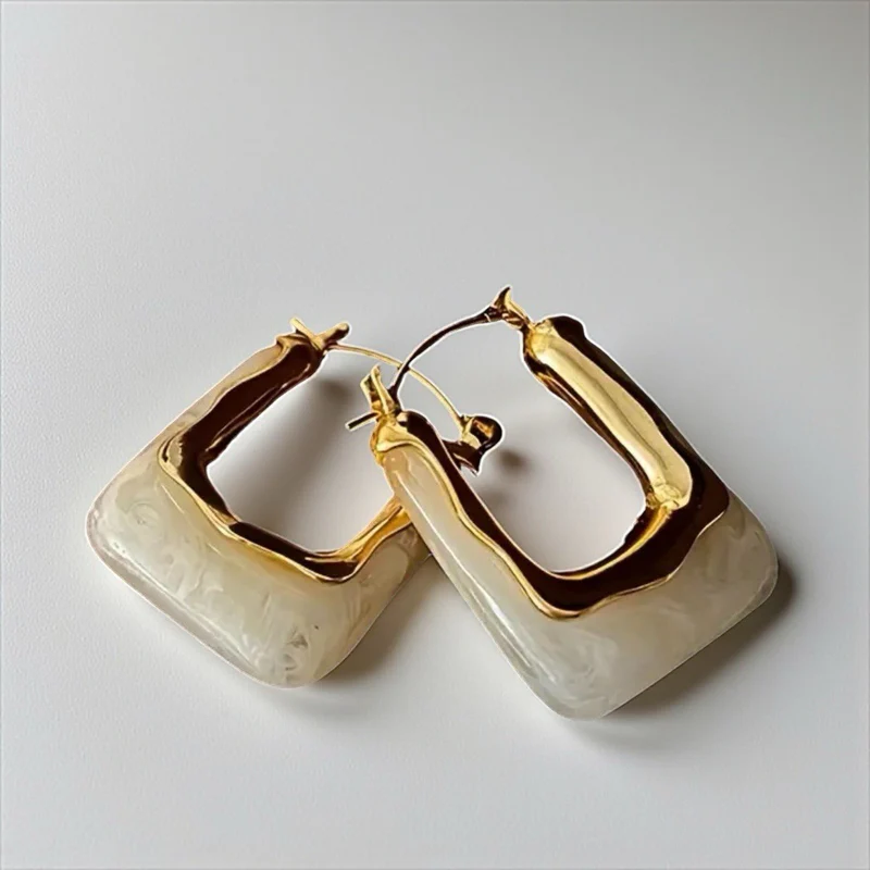 1 Ζευγάρι Σκουλαρίκια Λευκά, από ρητίνη, Μασίφ ακρυλικό, γυναικεία σκουλαρίκια με κρίκο, τετράγωνα vintage επιχρυσωμένα 18Κ. Σκουλαρίκια Ρητίνης από μασίφ ακρυλικό, 18Κ επιχρύσωση.