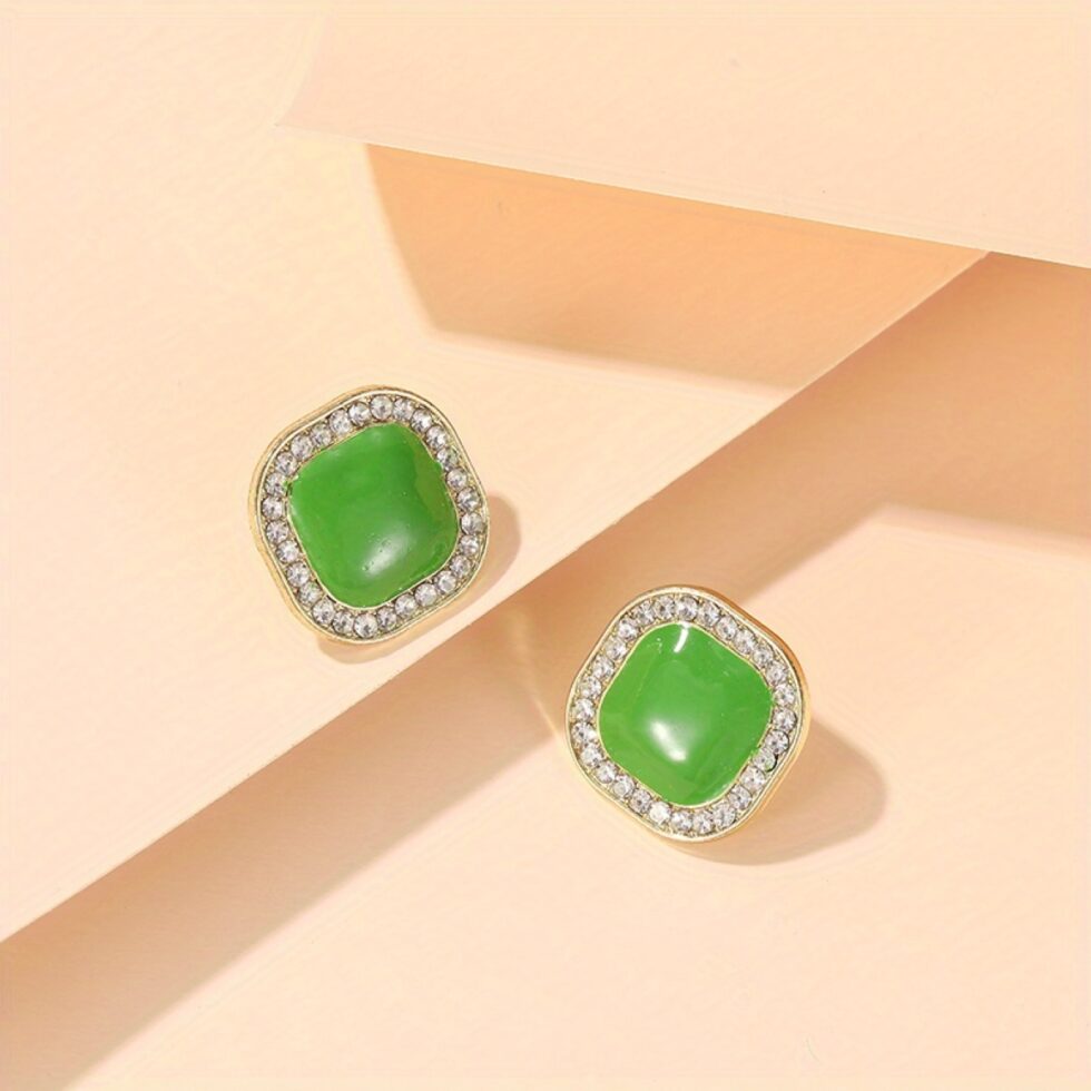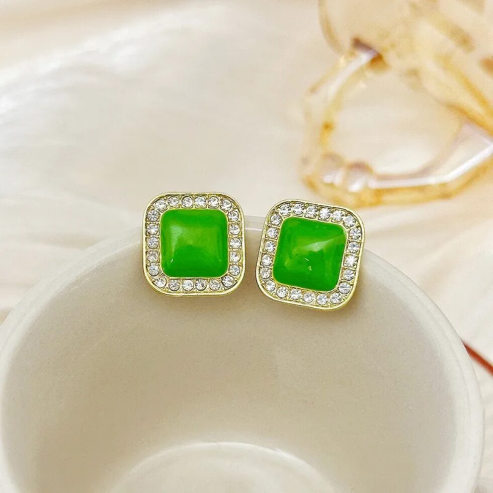 πράσινα σκουλαρίκια, σκουλαρίκια, τετράγωνα σκουλαρίκια, σκουλαρίκια με Ζιργκόν, μοντέρνα γυναικεία σκουλαρίκια, κοσμήματα μόδας